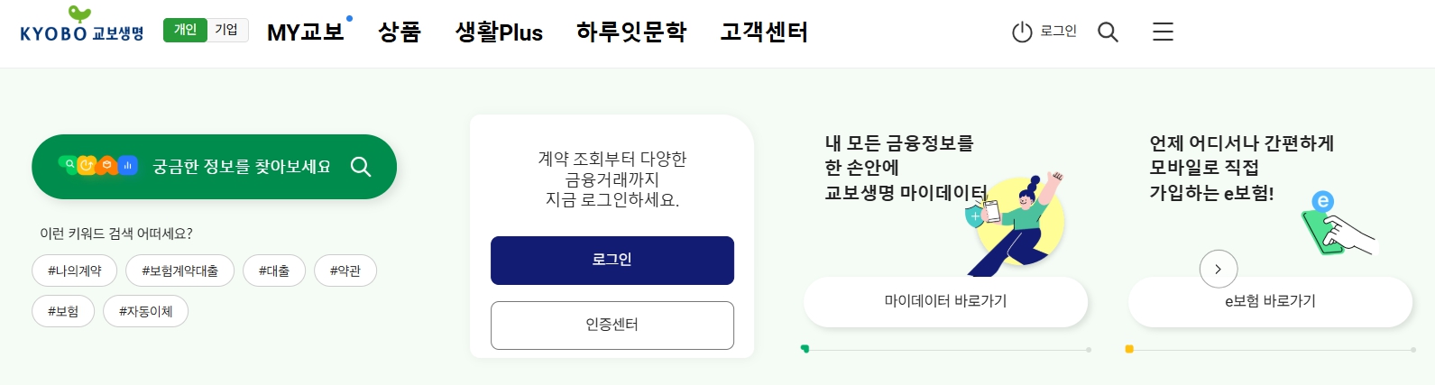 교보생명 홈페이지는 고객이 보험 및 금융 서비스를 편리하게 이용할 수 있도록 구성된 종합 플랫폼입니다.
