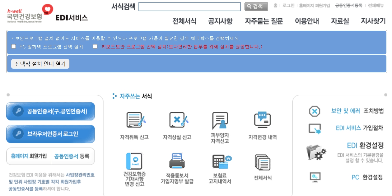 - 공동인증서 준비: 사업장용 공동인증서(구 공인인증서)를 미리 발급받아야 합니다. 이는 EDI 서비스 이용 시 필수적으로 요구됩니다.