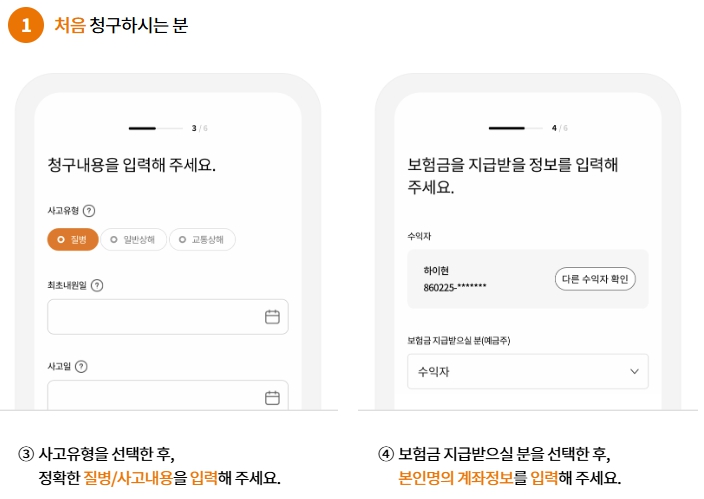 - 보험금 수령 계좌 정보: 보험금이 입금될 계좌 정보를 기재해야 합니다.