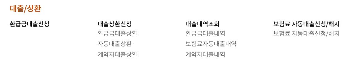 홈페이지는 사용자 친화적인 인터페이스를 제공하며, 주요 메뉴로는 보험상품 안내, 계약 조회, 보험료 납입, 보험금 청구, 자금 서비스 등이 있습니다.