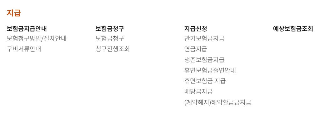보험금 지급 안내, 보험금 청구, 배당금 지급 등의 서비스를 통해 청구 과정을 상세히 안내하며, 필요한 서류를 제출하여 신속하게 보험금을 수령할 수 있도록 지원합니다.
