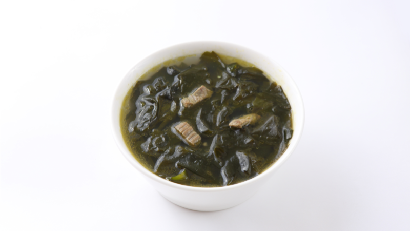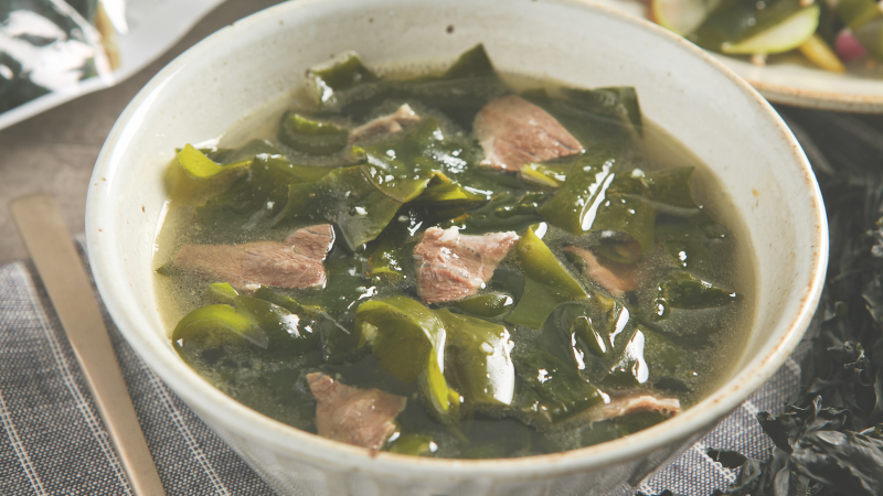 전통적인 미역국은 소고기와 함께 끓이는 경우가 많으며, 소고기 육수는 진하고 깊은 맛을 내줍니다.