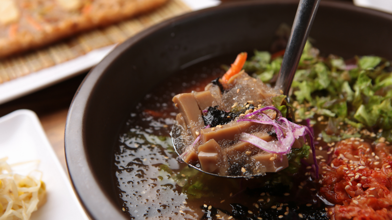 가장 대표적인 요리는 묵사발입니다. 잘게 썬 도토리묵에 국물을 부어 시원하게 즐길 수 있어 여름철 별미로 손색없습니다.
