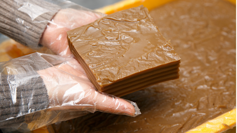 완전히 굳어진 도토리묵은 썰어 먹기 좋은 크기로 잘라 다양한 요리에 활용할 수 있습니다.