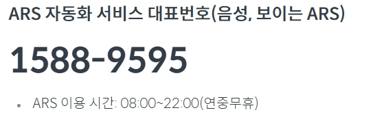 ARS 자동화 서비스는 1588-9595를 통해 제공되며, 연중무휴로 오전 8시부터 오후 10시까지 이용 가능합니다.