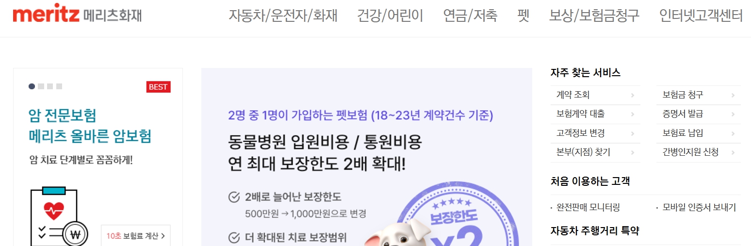 1. 메리츠화재 보험 홈페이지 주요 기능