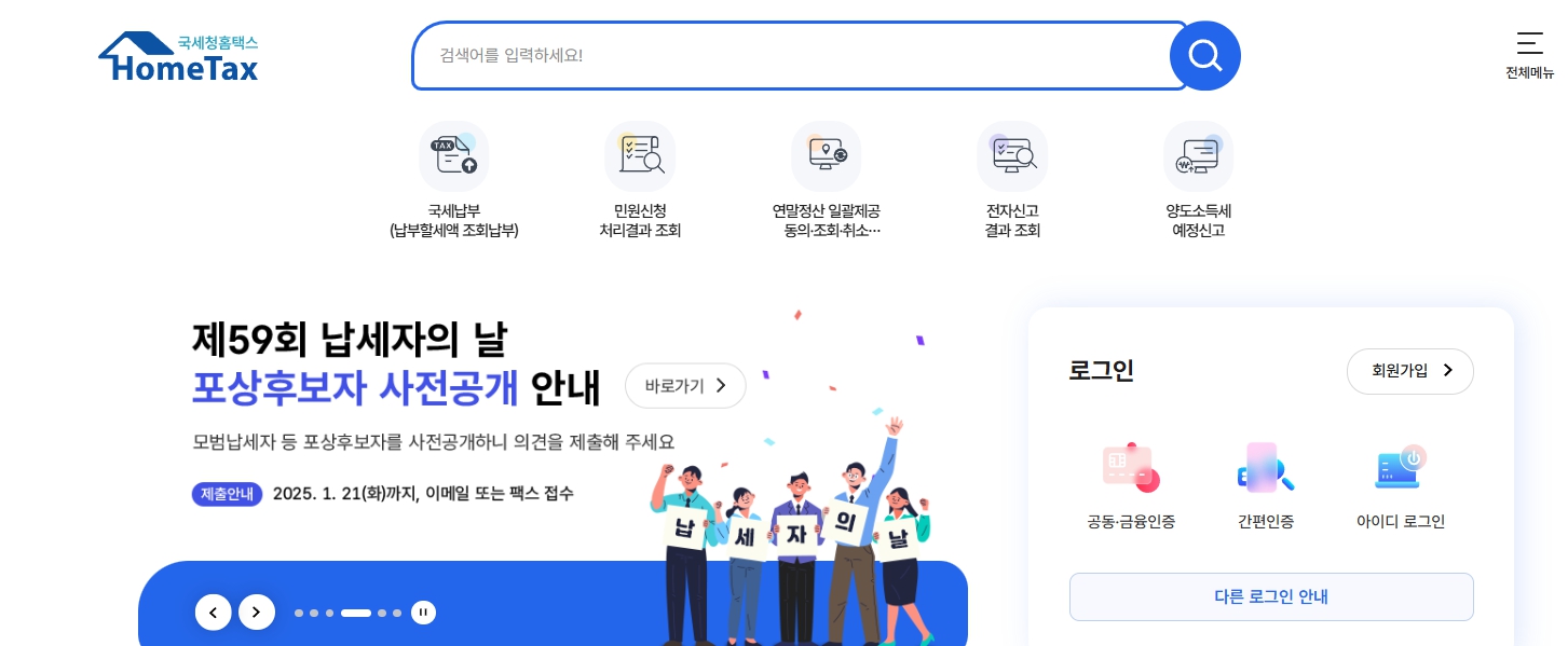 홈택스를 이용하려면 먼저 공식 홈페이지에 접속해 로그인을 해야 합니다. 공동인증서나 간편 인증을 통해 로그인한 뒤, 메인 화면에서 '조회/발급' 메뉴를 선택하고, '연말정산 간소화' 항목으로 이동합니다.