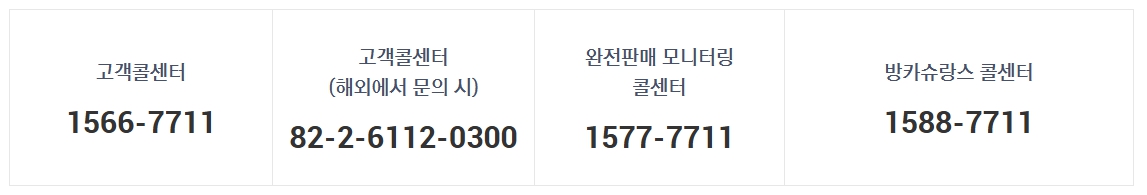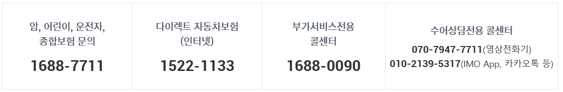 일반적인 보험 문의나 사고 접수는 대표 전화번호 1566-7711를 통해 가능하며, 해외에서도 별도의 번호 +82-2-1566-7711로 동일한 서비스를 이용할 수 있습니다.